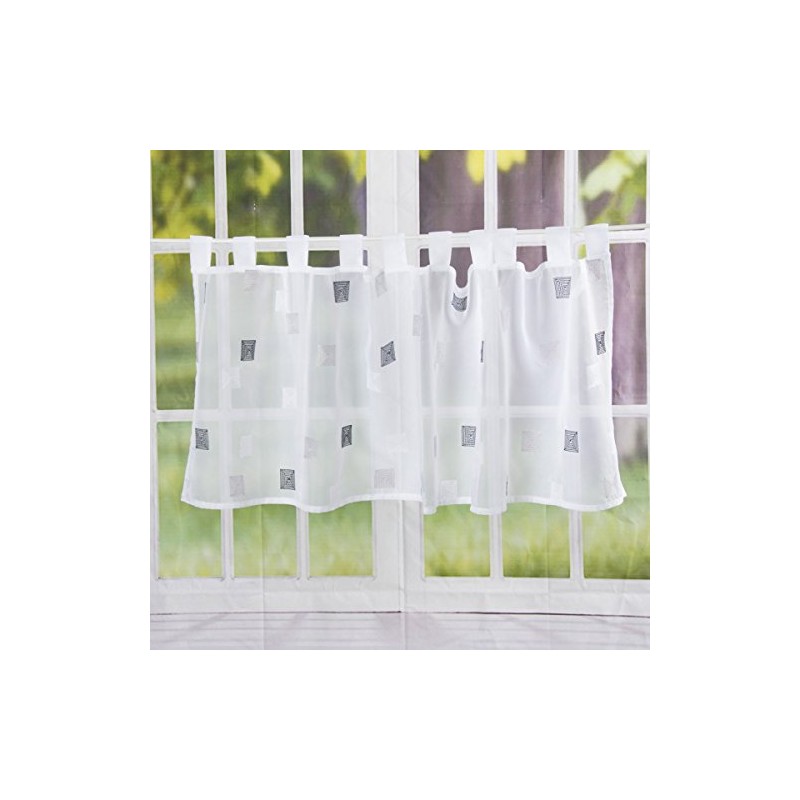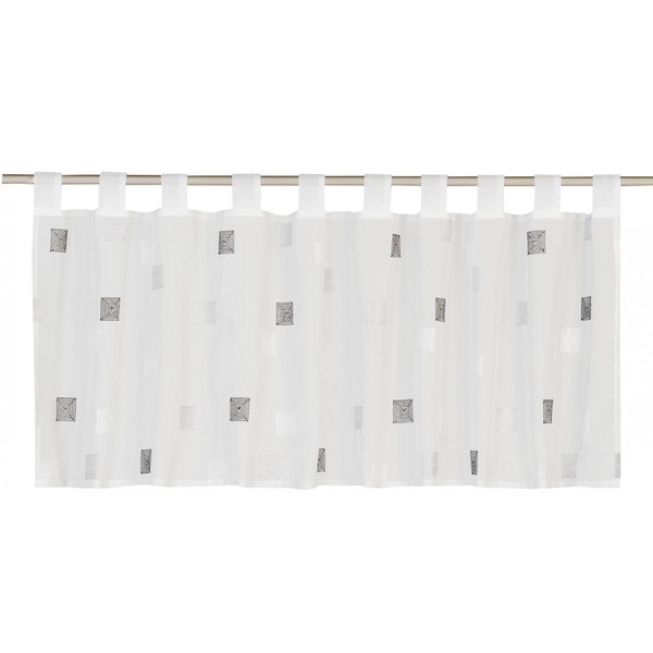 - Trendy, elaborately embroidered box motifs with loops for the curtain rod