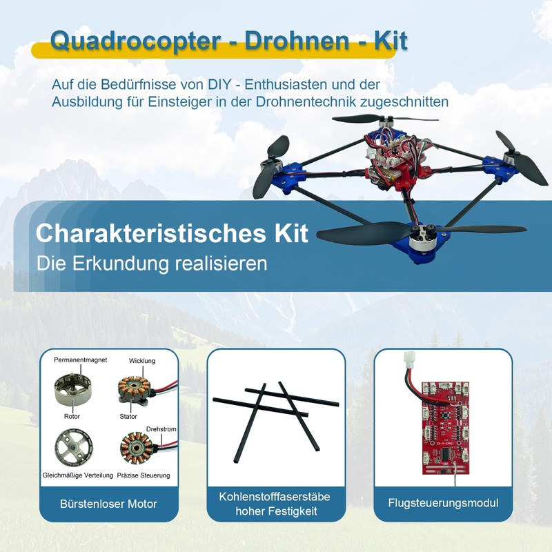 Quadrotor Drone DIY Kit, A Unique STEM Project with Brushless Motor, Optical Flow Floating, One-Click Start and Landing as well as 360° Rotation for DIY Enthusiasts to Understand the Basics of