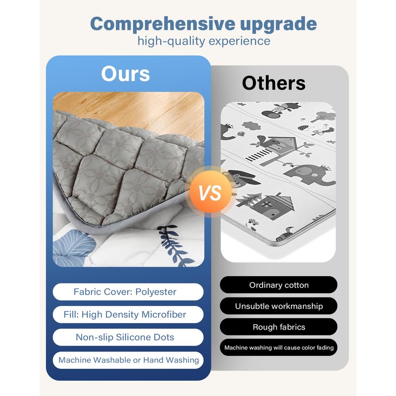 - 【Comfortable and Soft】 The infant play mat is made of super soft fabric and is filled with 690g of premium 100% polyester per square meter, making it very soft and comfortable. Provides pure comfort for baby crawling, rolling and playing