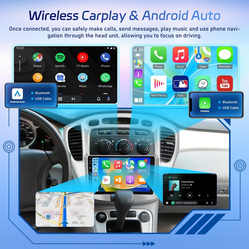 - Wireless Carplay and Android Auto with Voice Control: This Toyota Highlander stereo is equipped with wireless Carplay and Android Auto, which can seamlessly integrate smartphones. Easily access phone navigation, music, calls and more through the head unit. With the help of intelligent voice assistant, you can free your hands for safer operation. Provide a smarter and more convenient driving experience.