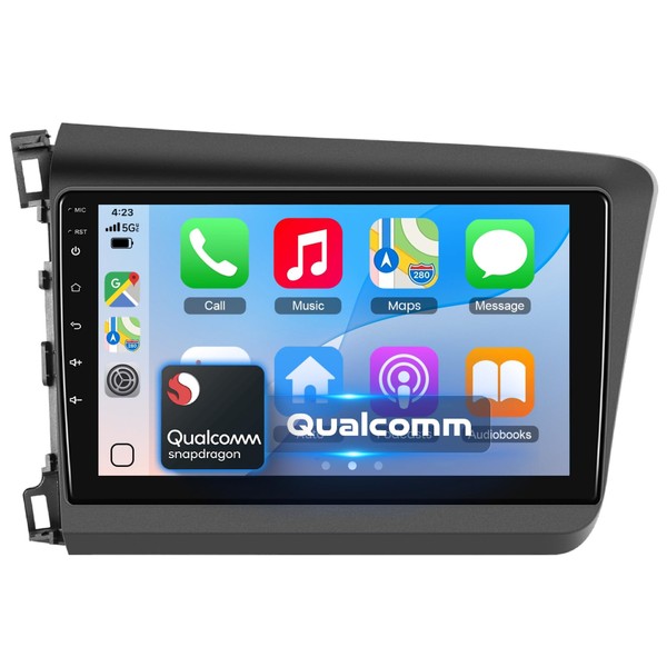 Qualcomm 8 Core 4G+64G Car Stereo for Honda Civic 2012-2015 with 9 Inch 1280P QLED Touchscreen/OTA/5G WiFi, Android Car Radio Carplay Android Auto Bluetooth 5.1/DSP/Hi-Res Audio/SWC/GPS