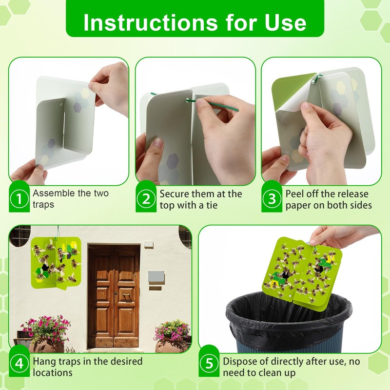 - Easy to Use: Our wasp repellent set includes 20 sticky trap cards and 15 pieces 15 cm PE iron core gardening ties. Combine two traps and secure them at the top with a tie. Hang them up to attract and catch wasps. Once the traps are full, you can discard them without cleaning up