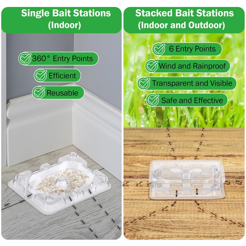 - Efficient and Neat: Whether indoors or outdoors, just set up the ant bait traps, add liquid ant bait (not included), and then watch how it attracts ants, and you can easily eliminate the entire ant colony