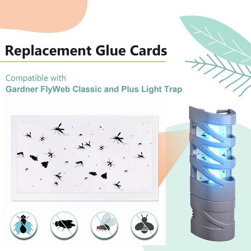 Qualirey 20 Pack Replacement Fly Glue Boards, Compatible with Gardner FlyWeb Fly Classic and Plus Light Trap, Sticky Cards Fly Traps for Indoors, Trap Fruit Flies, Mosquitoes, Gnats