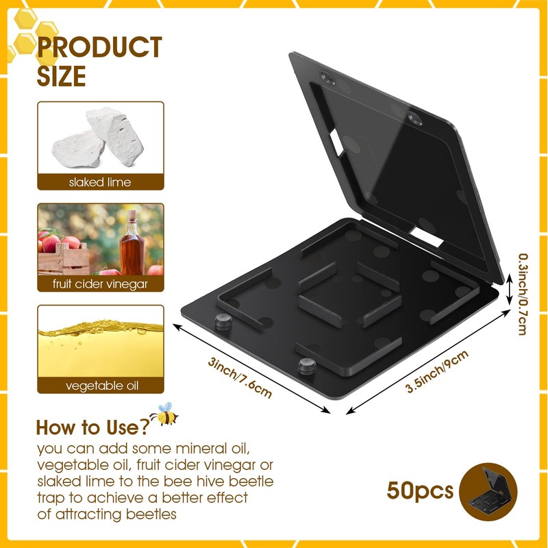 - Sufficient Quantity: every package includes 50 beehive beetle traps; This sufficient quantity provides a comprehensive solution to beetle infestation and ensures a safe place for your bees; Whether you have a small beehive or a large one, our beetle traps will provide the necessary coverage that your beehive requires