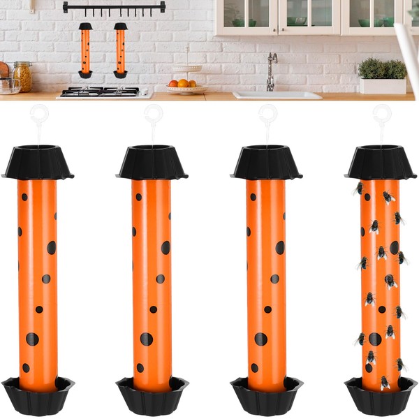 Qualirey Fruit Fly Traps for Indoors Hanging Fly Traps Outdoor Sticky Gnat Traps for House Indoor Gnats Killer Indoor Trap Tubes Disposable Fly Stick for Mosquito Flying Insect Bug Control (4 Pcs)