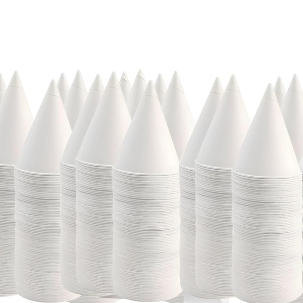 Quality Chemical White Paper Cone Cups, Snow Cone Cups, (5,000 Count) - 25 Packs of 200 Paper Cone Cups - 4.5 Oz - (White)