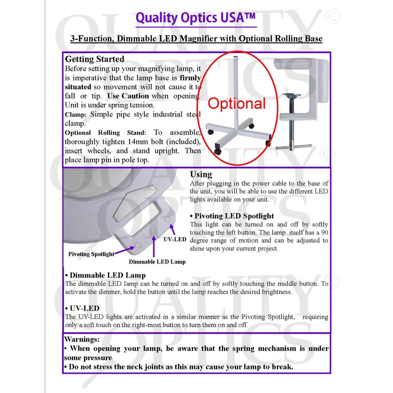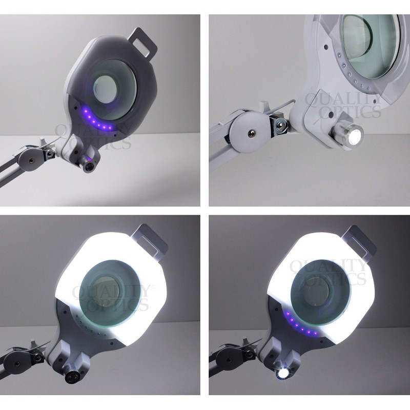 Quality Optics Desk Clamp Mount Magnifier Lamp Light Magnifying Glass Lens Diopter (No Stand, White 3 Function LED 3D/5D)