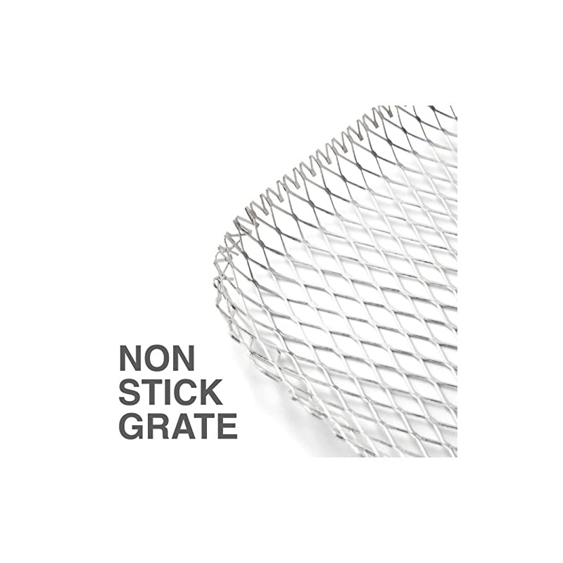 - Non Stick - Durable Material Used to keep your food from Sticking and Falling through the grates.
