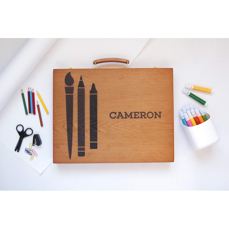 Qualtry Painting, Drawing & Art Supplies with Personalized Wooden Art Case for Kids 6-8 and 9-12 (Cameron Design) - Art Set, Paint Set, and Drawing Pencils Set for Boys and Girls