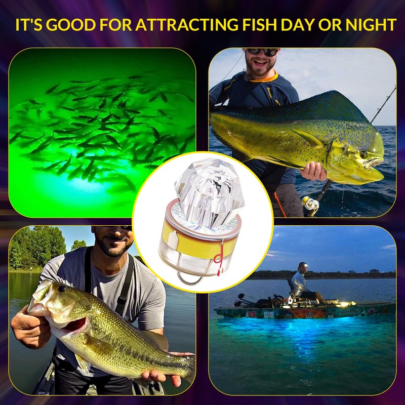 - 【PACKAGE Include】6PCS Fish Eye Attractants Lights w/ metal spoon S/M/L size, 4 kind of deep drop lights for choice. They are practical tool for deep sea fishing, the enough quantity that can meet your multiple purpose.