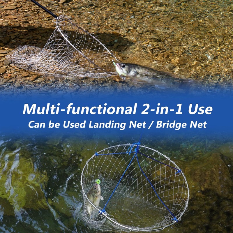 - 【Space-Saving Design】the stainless steel Ring adopts a Collapsible design, folds to 17 inches in seconds and weights only 1.25 pounds for easy transport and storage, making the foldable fishing net perfect for anglers on the go.