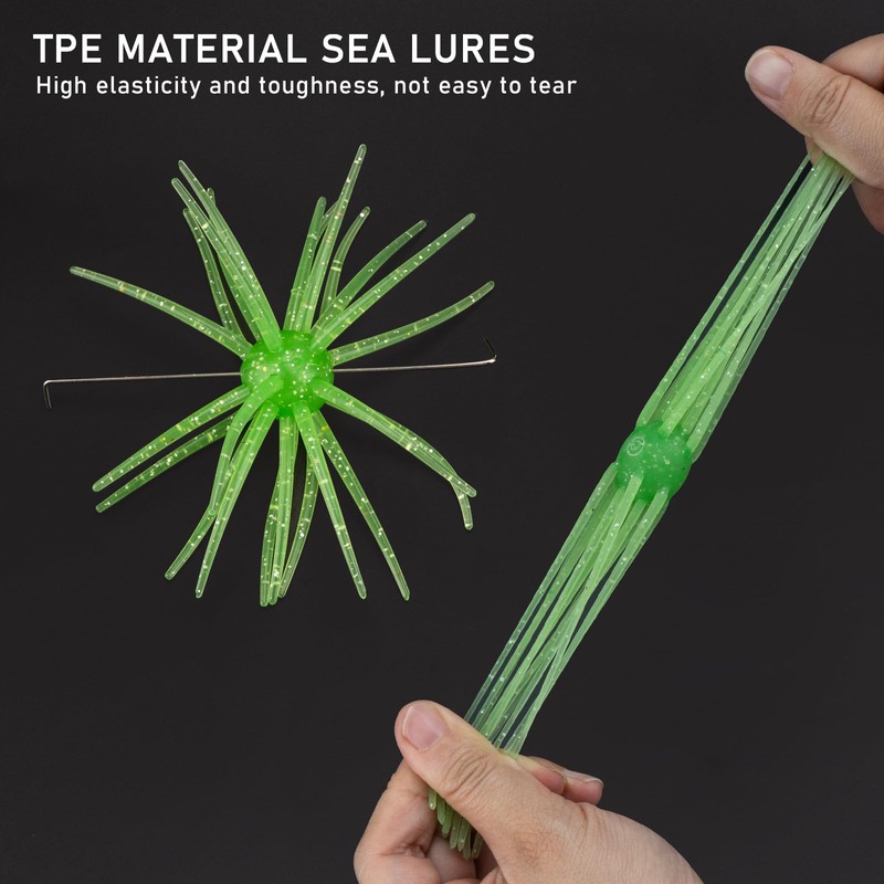 - 【ATTRACTIVE COLOR & GLITTERED】The bass lures feature a design on the tentacles of emulation providing an authentic look. Glitter particles are embedded in the body, creating additional flash and sparkle underwater, further enhancing their attraction to fish
