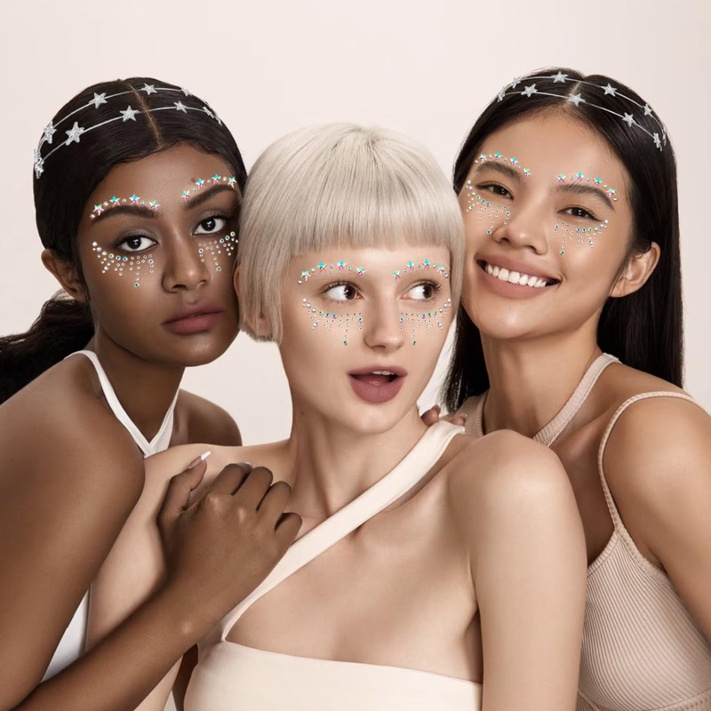 - Das glitzernde Gesichtstattoo ist aus Resin-Diamanten gefertigt und lässt sich perfekt mit dem glitzernden Stern-Stirnband kombinieren - ein tolles Headpiece-Set!