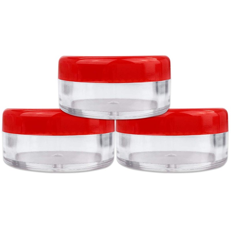 (Quantity: 100 Pieces) Beauticom 5G/5ML Round Clear Jars with RED Lids for Sc...