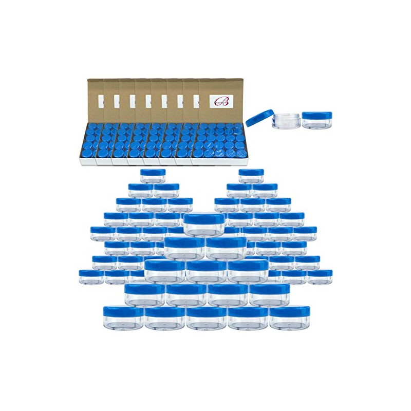 (Quantity: 1000 Pieces) Beauticom 5G/5ML Round Clear Jars with BLUE Lids for ...