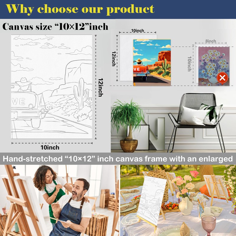 - 【Larger Canvas, More Creative Space】:This set includes two 10x12 inch pre-drawn canvases, perfectly sized so they don’t feel too small. Enjoy a relaxing and creative experience while chatting and painting with your loved one.