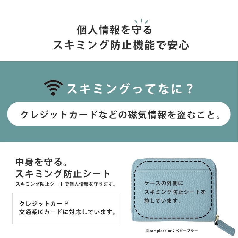 - [Prevents skimming] It has a skimming prevention function to protect stored cards from skimming. In addition, IC cards such as SUICA stored in the outer pocket have a special sheet to prevent the prevention function from working, so there is no need to take out the IC card during payments such as a ticket gate or cash register