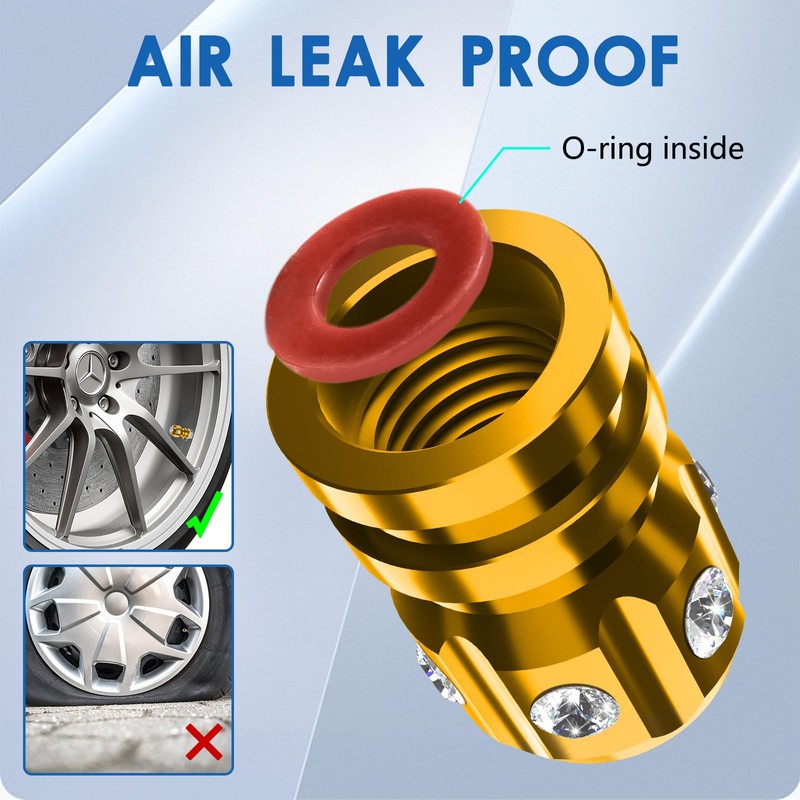 - 【Dustproof & Air Leak proof】: There is a rubber O-ring inside the tire air caps. In case the tire valve leaks, the O-ring will delay the speed of air leakage. The car tire caps keep dust and water outside to prevent the valve stem corrosion.