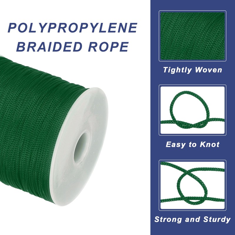 - Polypropylene nylon rope, length: 100 m/328 ft; diameter: 1 mm (1/16 inch); colour: dark green; material: polypropylene; style: braided rope; packaging: 1 x polypropylene rope