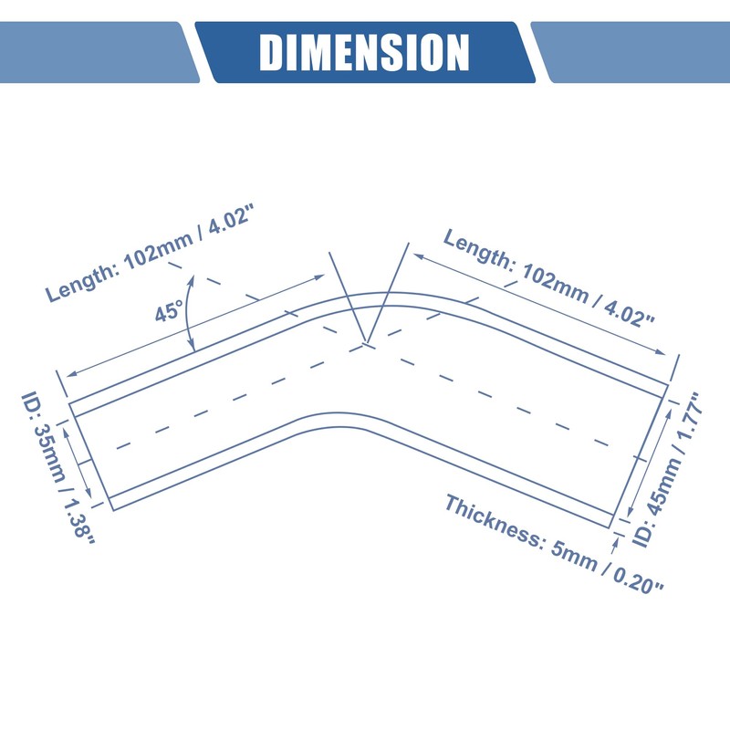 - [Größe] ID: 35mm / 1,38"-45mm / 1,77", Grad: 45°, Länge: 102mm / 4,02", Stärke: 5mm / 0,20".
