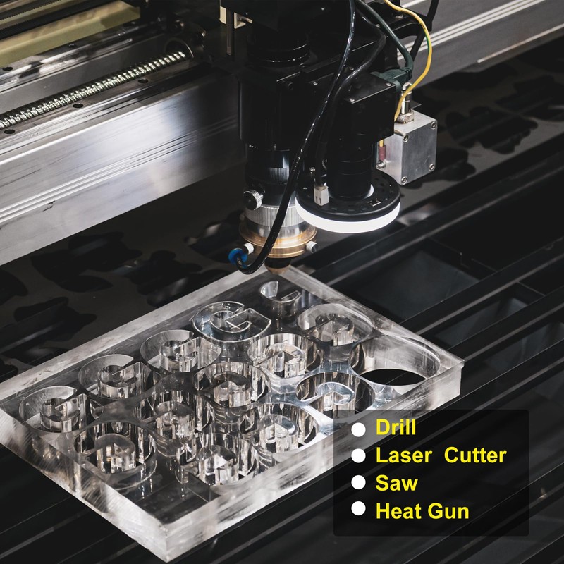 - Acrylic can be easily sawed, milled, laser engraved, glued, painted, drilled and bent. It is a great material for a variety of craft applications. Installation Instructions:1. Mark and engrave your picture; 2. Remove the protective film.