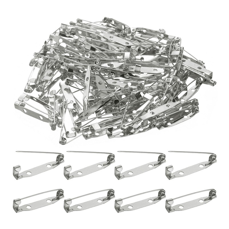 • Verriegelungsnadeln: Dieses Paket enthält 120 Stück Sicherheitsnadeln, jeweils mit den Maßen 30 mm x 5 mm/1,18" x 0,2" (L*B) und mit 2 Löchern von 2,2mm Durchmesser, die Broschen, Abzeichen und andere DIY-Bastelgegenstände sichern können