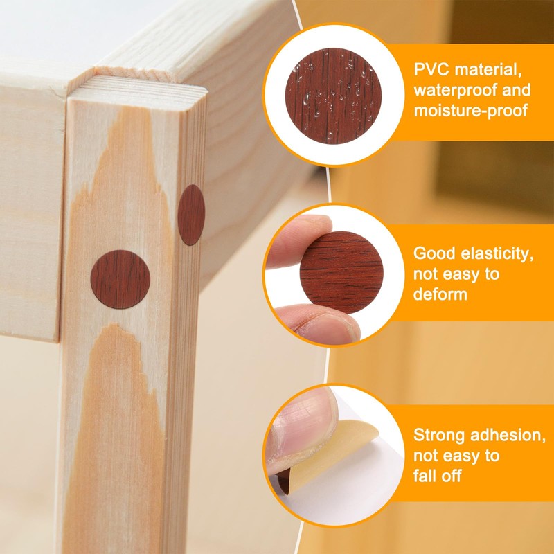 Unsere Schraubenlochabdeckungs-Aufkleber sind dick und verschleißfest, um sie auf die Schraubenlöcher von Möbeln zu kleben, die unschönen Schraubenlöcher abzudecken und die Möbel schöner zu machen. Die Rückseite der Schraubenlochabdeckung ist ein hochfester Klebstoff, der fest haftet und nicht leicht verformt oder abfällt, was verhindern kann, dass die Schrauben rosten und die Möbel beschädigen.