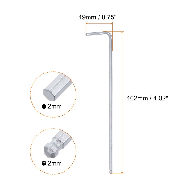 QUARKZMAN 2 Pieces Ball End Hex Key 2mm L Shape Extra Long Arm Chrome Vanadium Steel Hex Key Repair Tool for DIY Silver