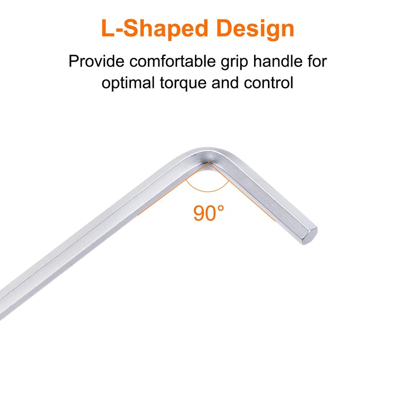 L-shaped hex key is widely used for removing and installing hex socket screws in towel rails, door handles, mounted furniture, appliances, etc.