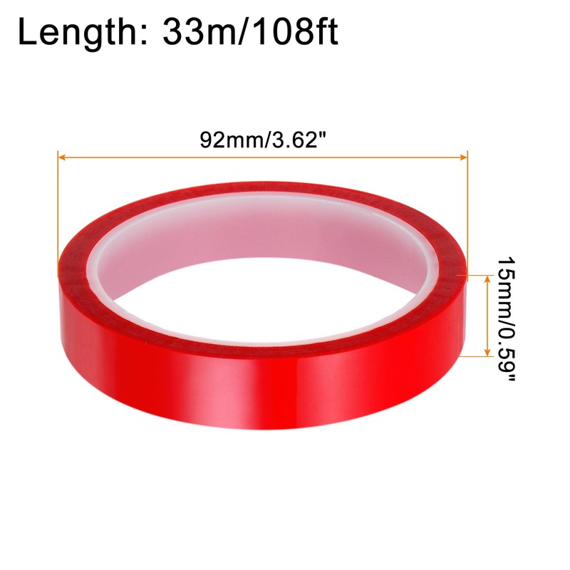- Size: width: 15 mm/0.59 inches; length: 33 m/108 ft; thickness: 0.06 mm; heat resistance: short time heat resistance: 260°C (500°F); long-term heat resistance: 220°C (428°F)