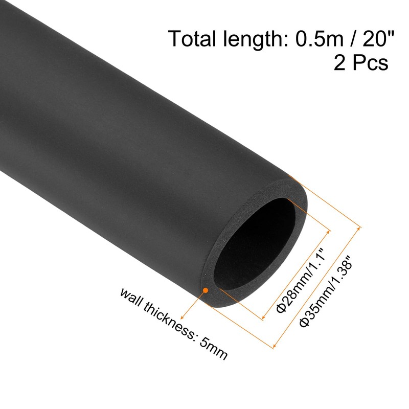 Pipe insulation foam pipe, size: 28 mm/1.1 inch inner diameter, 35 mm/1.38 inch outer diameter, 5 mm wall thickness, 0.5 m (20 inch) total length.