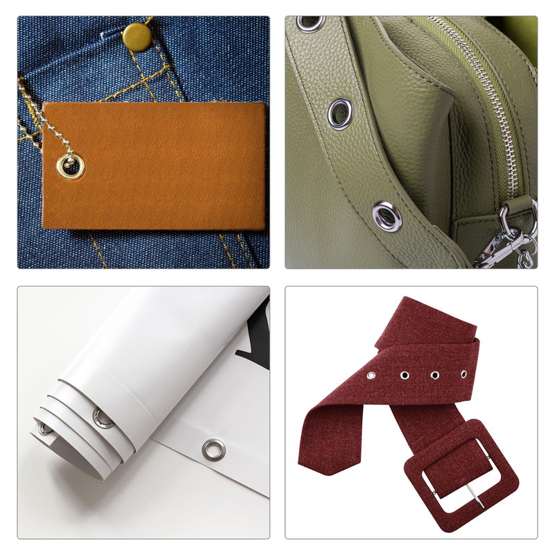 - Steps of use: first use a hole punch to punch the hole, insert the hole through the eyelet and install the washer. Then use the tool and base to tighten the eyelet.