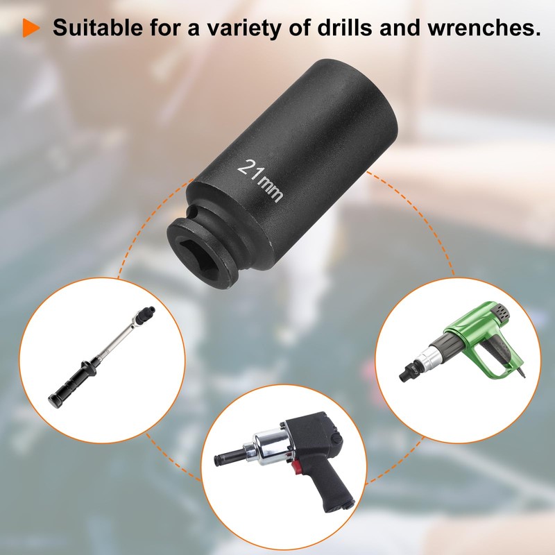 - Application - Deep impact wrench sleeves are used for the disassembly and assembly of eye bolts and some screws with special shapes. They are suitable for the maintenance and assembly of various large devices, car maintenance, home maintenance, etc.