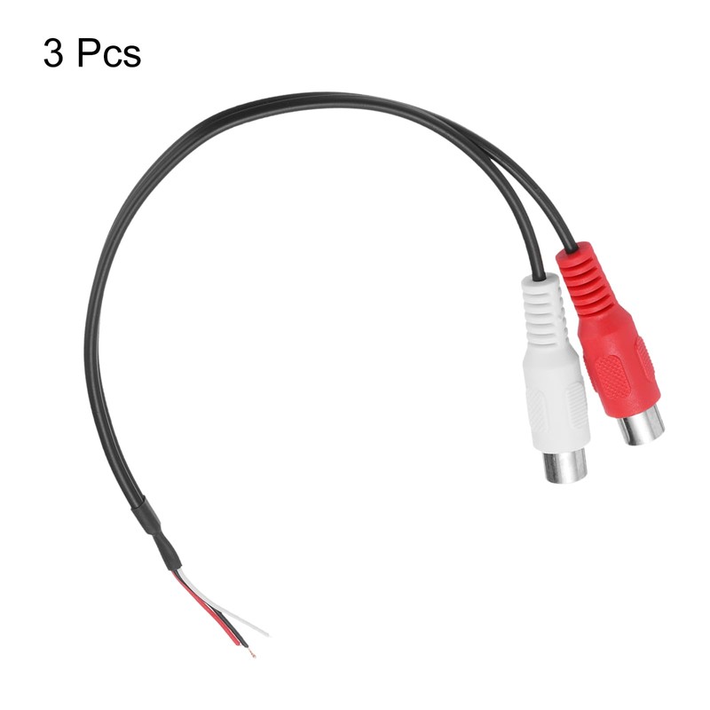 - Female Diameter: 3.5mm/1/8"; Plug Length: 39mm/1.5"; Cable Diameter: 2.5mm/0.1"; Total Length: 0.25m/9.84"; Package Includes:3pcs x RCA Female to Bare Wire Open End Speaker Cable