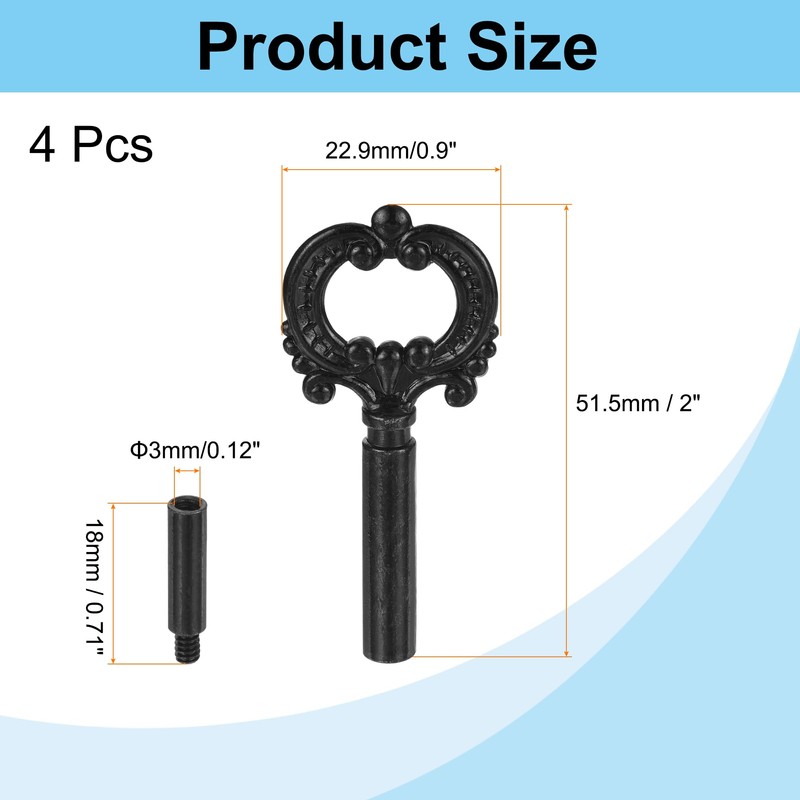• Material: Brass; Aluminum Alloy; Color: Black; Total Size: 51.5mm x 22.9mm/2 x 0.9"(L*D);Thread Size: 3mm/0.12";Head Length:43.3mm/1.7";Extension Rod Length:18mm/0.71";Package Include: 4pcs Lamp Knob Replacement