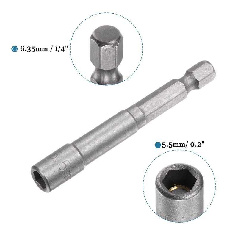 - ! Introduced - 5.5 mm power nut driver magnetic hex socket nut setter 1/4 inch hex shank 65 mm length