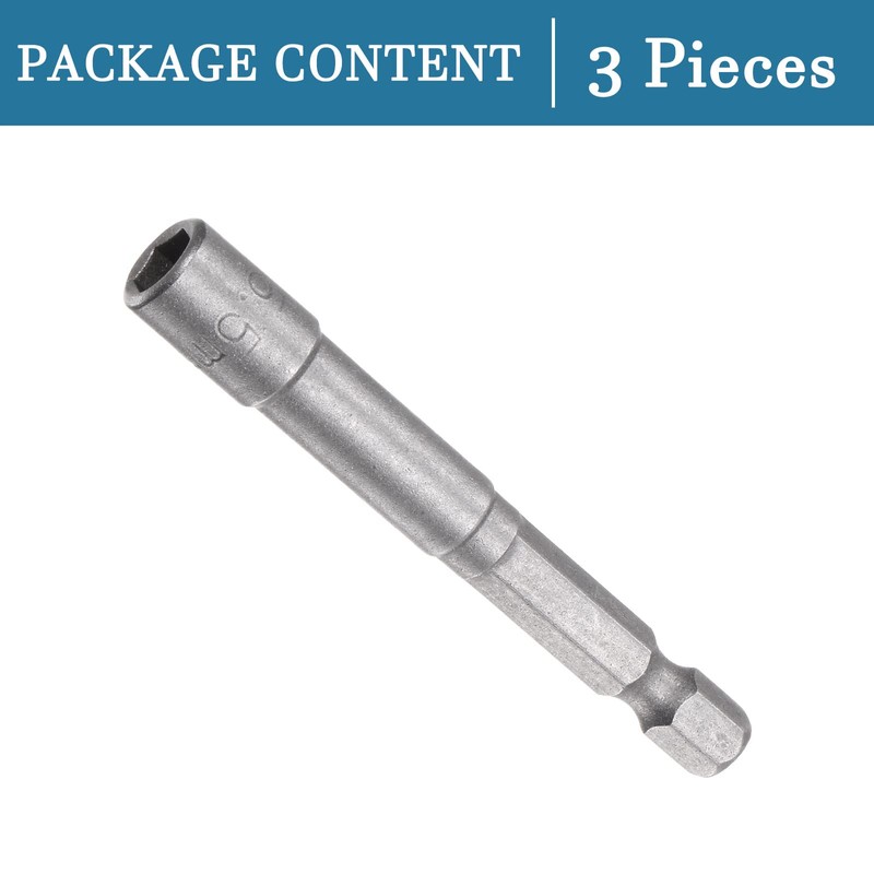 QUARKZMAN 5.5 mm Power Nut Driver x 3 Pieces Magnetic Hex Socket Nut Setter for Power Tools, [1/4 Inch Hex Shank, 65 mm Length]