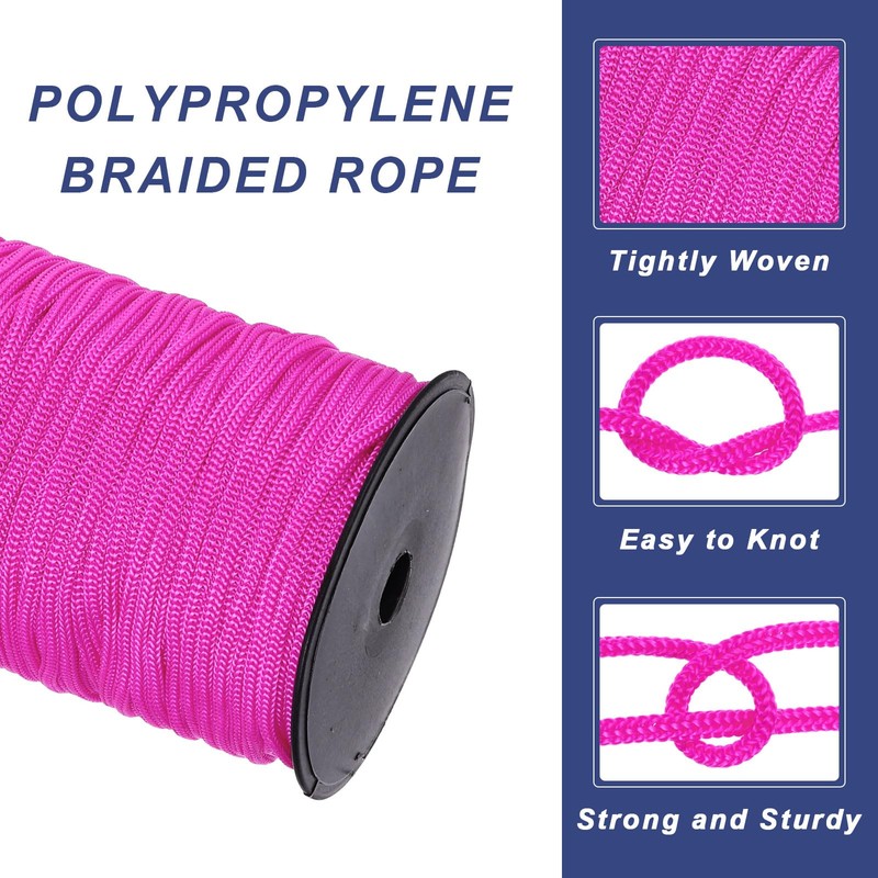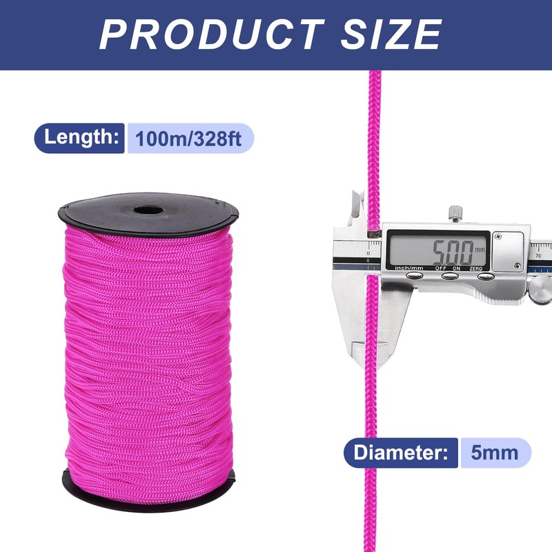 - Polypropylen Nylonseil, Länge: 100m/328ft; Durchmesser: 5mm(3/16 Zoll); Farbe: Rosarot; Material: Polypropylen; Stil: Geflochtenes Seil; In der Verpackung: 1 x Polypropylen Seil