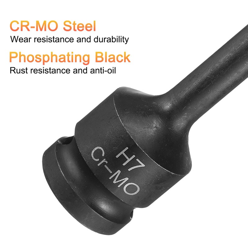 • Specifications - Impact Driver Drive: 1/2"; Hex Bit: 7mm / 0.28"; Total Length: 78mm / 3.07"; Package Includes: 1 x Hex Impact Driver Bit Socket