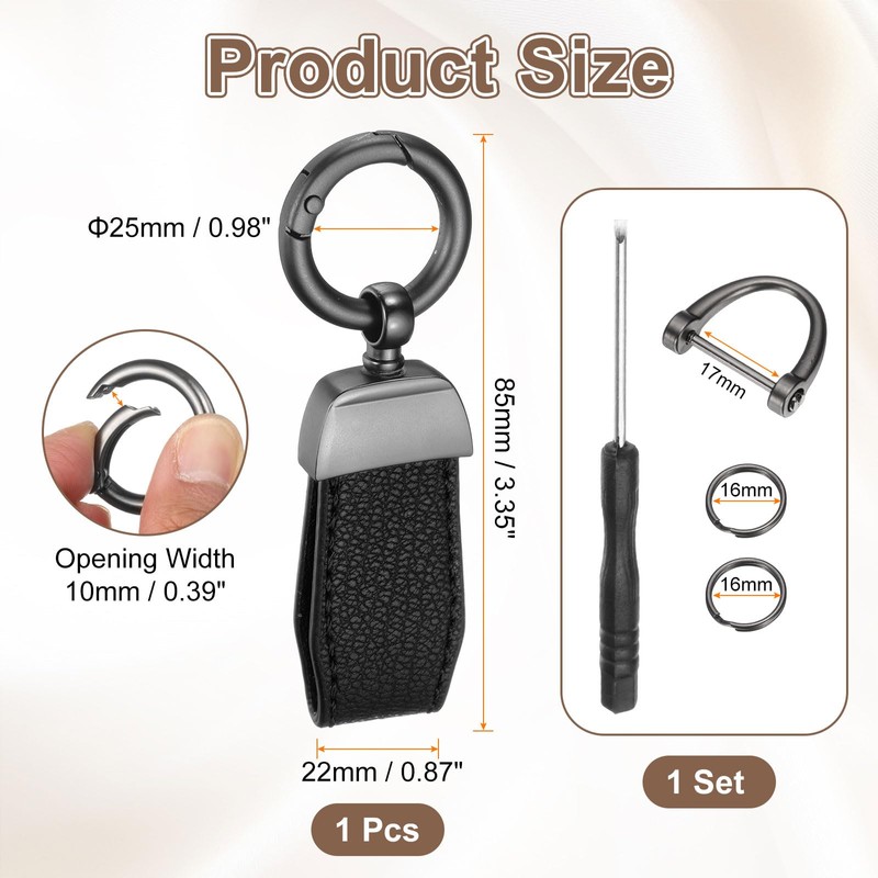- Verpackung und Größe: Länge: 85mm / 3,35 Zoll; Bandbreite: 22mm / 0,87 Zoll; Öffnungsbreite: 10mm / 0,39 Zoll; Metallringgröße: 27x20mm / 1,06x0,79 Zoll (OD*ID); Verpackungsinhalt: 1 Stück Autoschlüsselanhänger; 1 Stück Schraubendreher