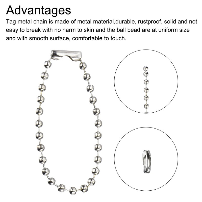 - These metal ball chains are widely used in jewellery making, Christmas decorations, DIY craft projects, also used as key rings and jewellery chains. Suitable for hanging keys, dog tags, tags, bottle caps, nail files, pendants, necklaces, bracelets, etc.