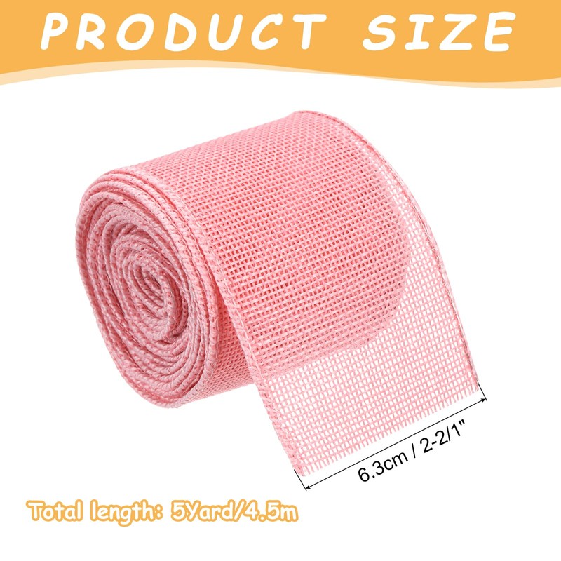 QUARKZMAN Burlap Ribbon Fabric Wired Edge Ribbons Pink 2-2/1 Inch x 5 Yard Wired Ribbon for Gift Wrapping, Bow, Wreath, Christmas Tree, Flower Bouquet