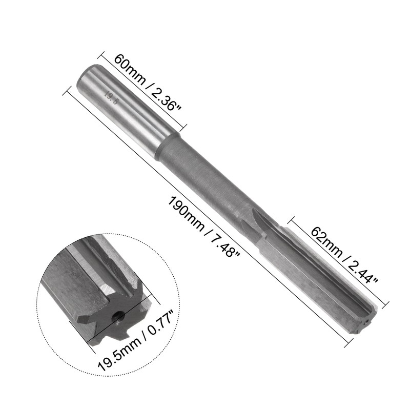 - Specifications: Cutting diameter: 19.5 mm / 0.77 inches; cutting length of the tool: 62 mm / 2.44 inches; total length: 190 mm / 7.48 inches. High speed steel drill bits provide durability, high hardness, good toughness, wear resistance, high temperature resistance, and the ability to maintain sharpness over time.