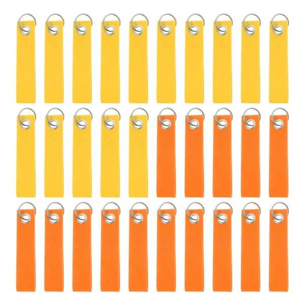 - Package includes: the set contains 30 pieces felt key rings in yellow and orange and 30 pieces key rings. The short lanyard is 130 mm long, 30 mm wide and 6 mm thick. The right size is not only suitable for decoration, but also allows you to quickly find the items attached to the keyring.