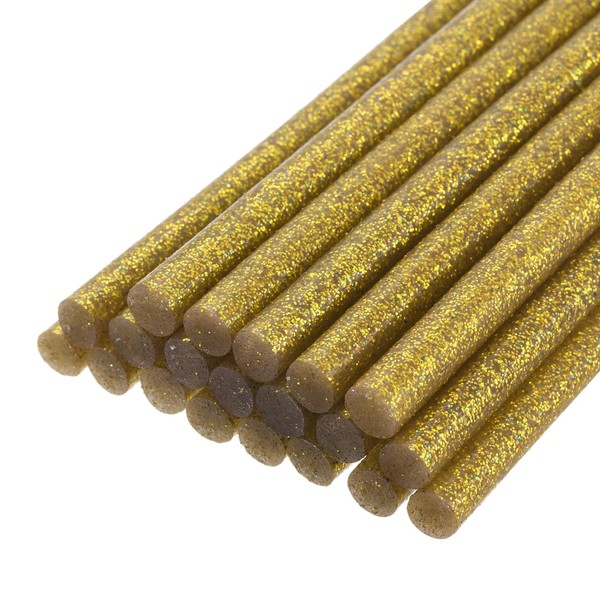 QUARKZMAN Heißklebepistolenstäbchen, 200mm lang x 7mm Durchmesser für Heißklebepistole, Perfekt für DIY-Bastelprojekte und Versiegelung, Glitzer Gold, 20 Stück