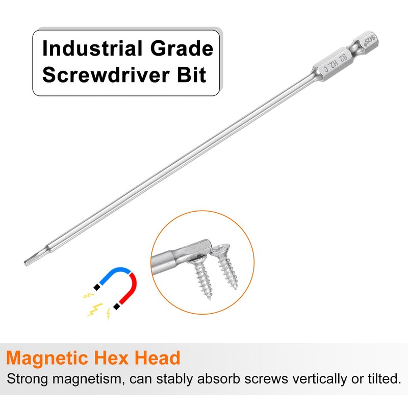 - Size - Hex Key Drill Bit Size: 2mm (H2), Hex Shank Size: 1/4", Total Length: 150mm/6", Bar Diameter: 3.5mm/0.14", Effective Bar Length: 120mm/0.94", Hardness: HRC58-60. Each hex screwdriver bit is clearly engraved with the size number for easy identification.