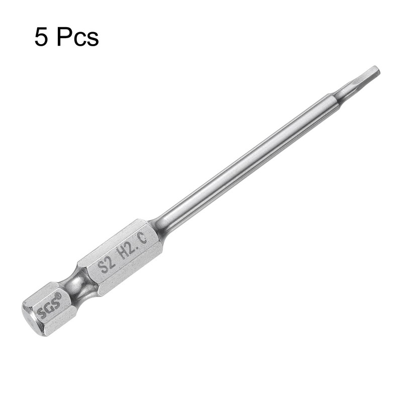 - Size - Hex Key Drill Bit Size: 2mm (H2), Hex Shank Size: 1/4", Total Length: 75mm/3", Bar Diameter: 3.5mm/0.14", Effective Bar Length: 50mm/0.94", Hardness: HRC58-60. Each hex screwdriver bit is clearly engraved with the size number for easy identification.