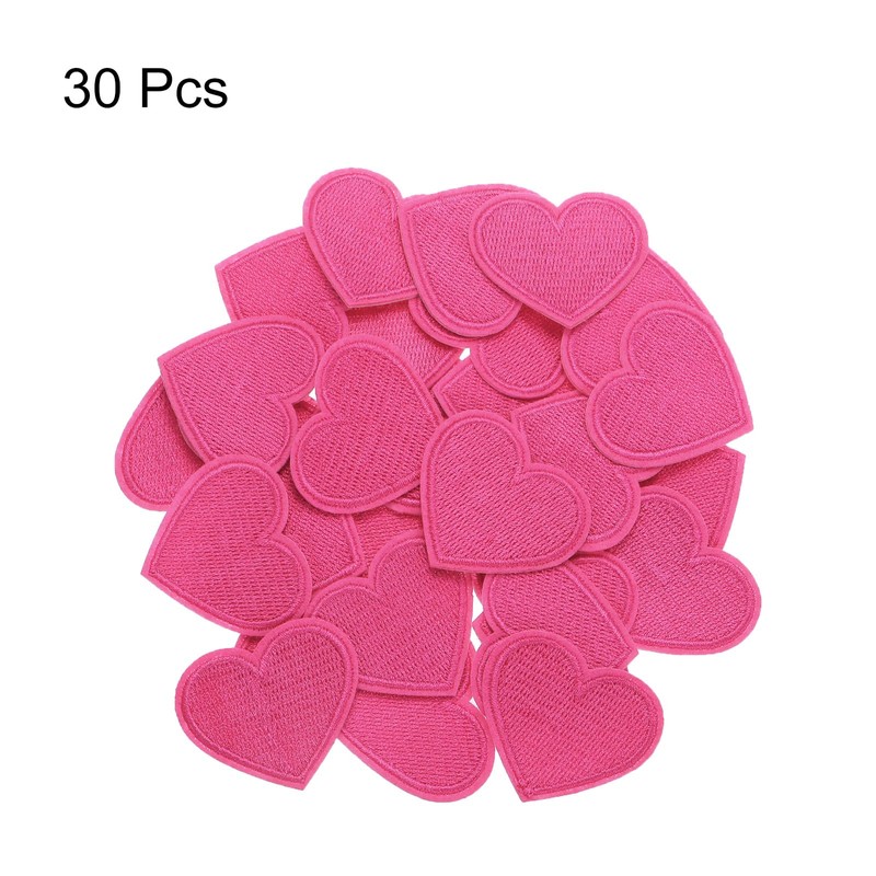 Shape: heart; colour: rose pink; material: fabric; total size: 4 cm x 3.5 cm/1.57 inches x 1.37 inches (L x W); in the packaging of: 30 x small heart iron-on patches;