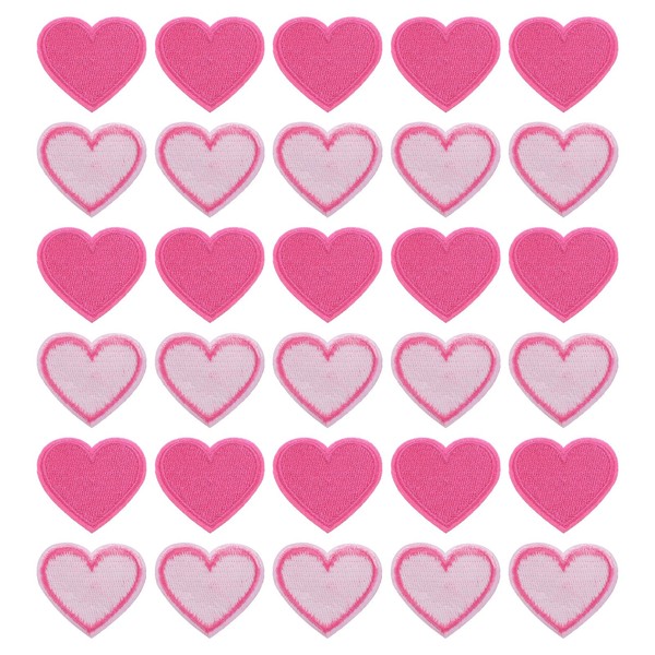 QUARKZMAN Iron-On Patches, Rose Pink, Iron-On Patches, Heart-Shaped Patches for Clothes, Jackets, Backpacks, Repairing Decorations, Pack of 30, 40 x 35 mm